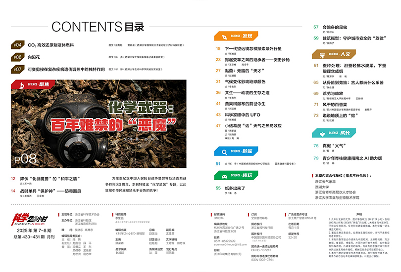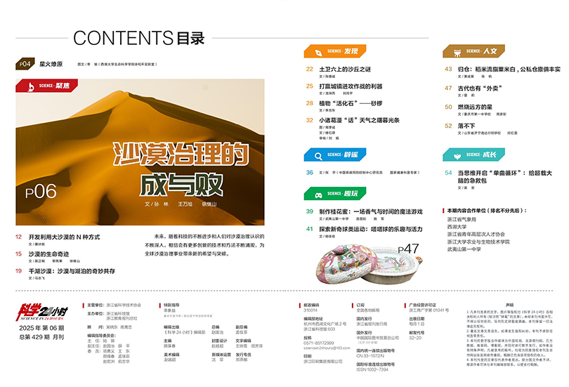 《科学24小时》杂志是一本专注于科学普及与传播的月刊。创刊多年来,它始终致力于将最新的科学发现、最前沿的科技动态以及最实用的科普知识带给广大读者。杂志内容丰富多彩,涵盖了物理、化学、生物、天文、地球科学等多个领域,不仅适合科学爱好者阅读,也是中小学生科学启蒙的良师益友。