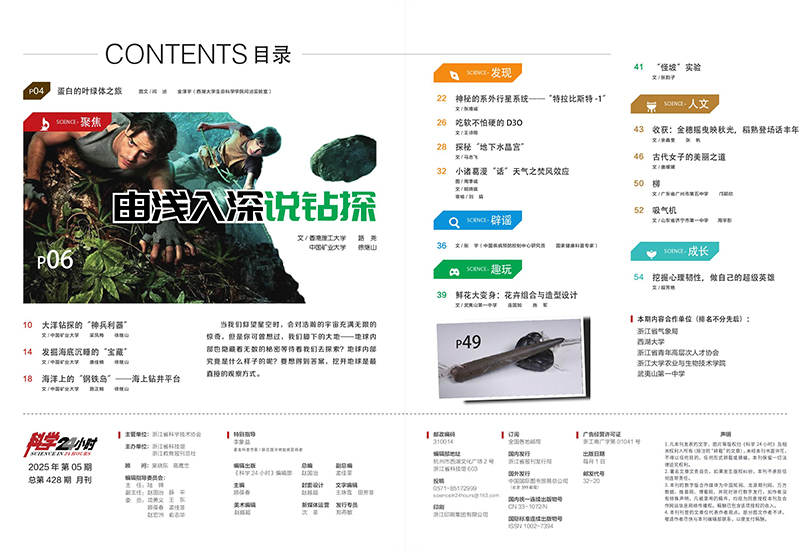 除了科学报告和文章,《科学24小时》杂志还定期刊登专题报道和独家采访。杂志深入挖掘科学领域的重要议题,介绍前沿的研究机构和科研项目,呈现科学家和专家的思想和创新。通过专业而生动的写作风格,杂志希望激发读者对科学的兴趣和热情,鼓励他们投身科学研究和创新实践。